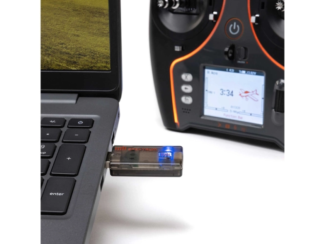 Spektrum bezdrátové USB rozhraní simulátoru V3. Slouží pro bezdrátové připojení vysílače Spektrum DSMX/DSM2 k počítači nebo jinému mobilní zařízení Android pro ovládání simulátor. Po zapojení do počítače se vytvoří univerzální herní zařízení, kterým lze následně ovládat širokou škálu např. RC simulátorů (např. Real Flight 8+,Real Flight9, DRL (Drone Racing League) a LiftOff FPV, FMS a podobně) nebo her. Simulátor využívá standardní ovladače HID, které jsou součástí běžných operačních systémů (Windows, Linux, Android, Mac).