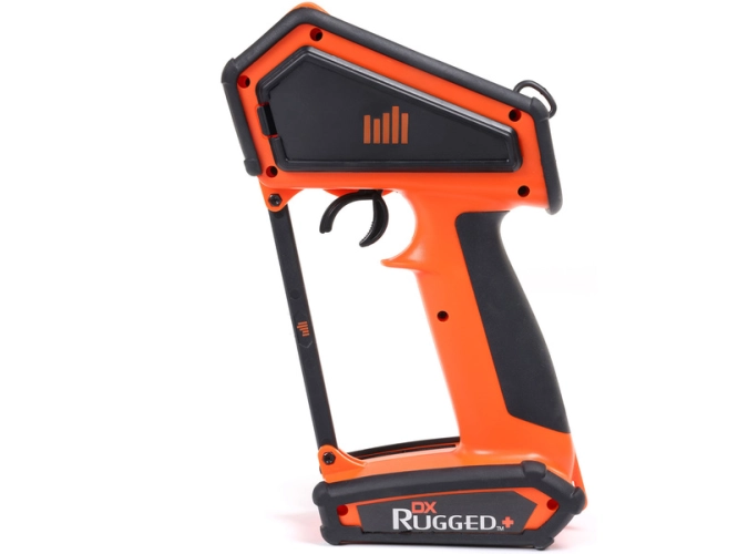 DX Rugged+ vyniká designem vysílače, který říká, že bez obav zvládáte i ten nejdivočejší terén, nejtěžší podmínky a nejtvrdší konkurenci. Proto jde odolnost ruku v ruce s pohodlím. Vestavěná boční přihrádka nabízí uložení nářadí a jsou dodávány i dva úchyty na řemínek na krk (jeden pryžový, druhý zalisovaný do šasi), takže můžete mít okamžitě volné ruce.