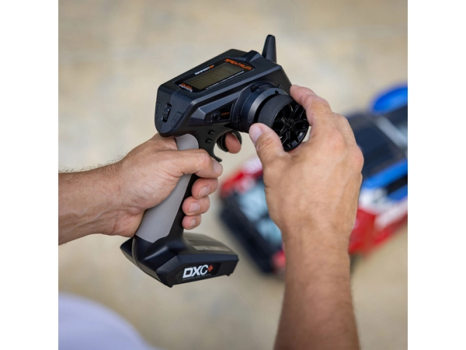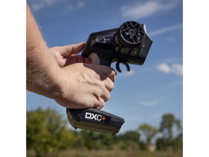 Vysílač Spektrum DXC+ je dokonalým důvtipným řešením pro RC auta, lodě a makety, pro které nabízí rozsáhlý seznam možností. 12 proporcionálních kanálů umožňuje řízení pokročilých funkcí modelů, např. osvětlení, převodovky, uzávěrek diferenciálů, samostatné řízení brzd, zatáčení zadních kol nebo oddělené řízení předních kol. Výhodou je intuitivní software a programování, pohyb v menu je jednoduchý pomocí rolovacího tlačítka. Obsažený slot USB umožňuje snadné aktualizace firmwaru a kompatibilitu se simulátorem VRC Racing. Díky frekvenčně agilní technologii DSMR+ 2,4GHz a nově i STL můžete vysílač použít v různých typech modelů, včetně lodí. Jeho dosah a odezva, zejména v zatíženém prostředí 2,4GHz, jsou skvělé.