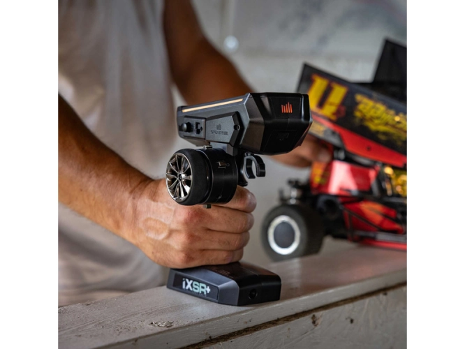 iXSR má pokročilé řídící programování navržené tak, aby pracovalo s nejnovějšími technologiemi Spektrum. Systém stabilizace AVC si můžete přizpůsobit tak, že poskytne snadný přístup k vyhrazeným úpravám. Kromě toho lze otevřené kanály iXSR použít k nezávislému nastavení systému AVC pro řízení a plyn. Bez ohledu na to, jaký řídíte model, technologie AVC se snadno přizpůsobí vaší úrovni dovedností nebo stylu jízdy. Vysílač je navíc kompatibilní se stabilizačním systémem motocyklu MS6X™. Systém MS6X poskytuje okamžité korekce týkající se naklánění, samonivelace a další s přirozeným pocitem z jízdy. Obsažena je rovněž technologie DRIVE pro monster trucky.