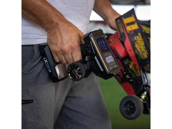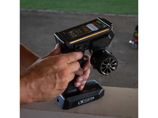 Vysílač iXSR+ je dokonalým důvtipným řešením pro RC auta, lodě a makety. 12 proporcionálních kanálů umožňuje řízení pokročilých funkcí modelů, např. osvětlení, převodovky, uzávěrek diferenciálů, samostatné řízení brzd, zatáčení zadních kol nebo oddělené řízení předních kol. Díky frekvenčně agilní technologii DSMR+ 2,4GHz a nově i STL můžete vysílač použít v různých typech modelů, včetně lodí. Jeho dosah a odezva, zejména v zatíženém prostředí 2,4GHz, jsou skvělé. Výhodou je intuitivní software, jednoduché programování pomocí dotykového displeje.