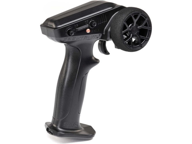 Jednoduchý a cenově dostupný 2-kanálový vysílač Spektrum SLT2 2.4GHz, kompatibilní s protokolem SLT a modulací FHSS. Limit plynu 50/75/100%, trimy řízení, reverz serva, dráha serva řízení. LED indikace stavu baterie ve vysílači. Možnost ovládání stabilizace DSC.