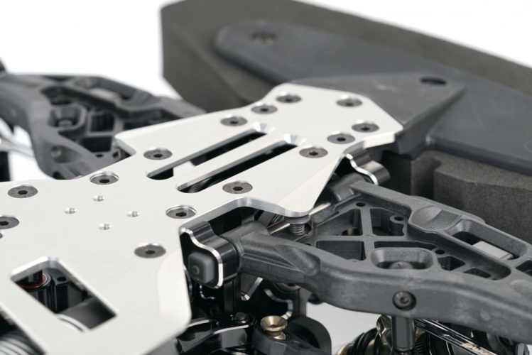 Držáky ramen s čtvercovými vložkami umožňují přizpůsobit geometrii náprav vašeho modelu SWORKz S35-GT3.0e FTE jakémukoli uspořádání dráhy. Přední a zadní CVD poloosy jsou vyrobeny z nově vyvinutých kompozitních materiálů. Boční vany byly také přepracovány.