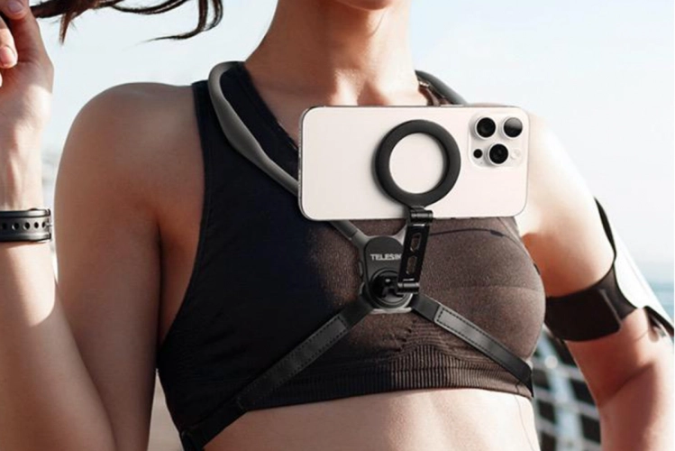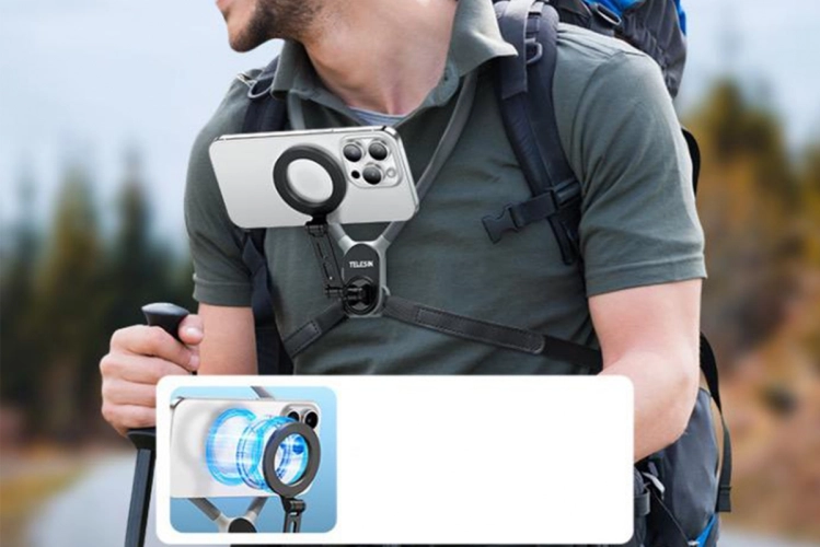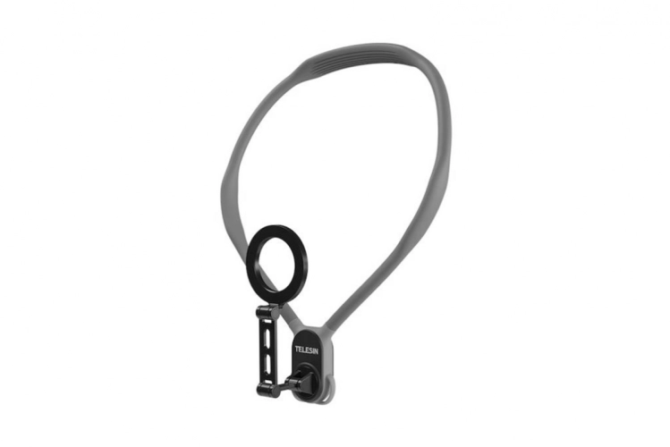 Magnetický nákrční držák na smartphone Max (Telesin) v šedé barvě. Vyroben z kvalitního silikonu, nerezové oceli a PC. Váha 270 g. Obvod držáku je 700 mm, což umožňuje pohodlné nošení kolem krku. Držák nabízí 360stupňový rotaci pro maximální flexibilitu při používání telefonu. Díky bezpečnostnímu pásku je držák stabilnější a pevněji drží na místě. Ideální pro hands-free používání telefonu při práci nebo volném čase.