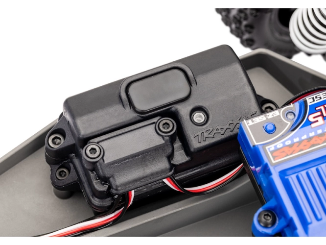 Tří-kanálový přijímač Traxxas TQ 2.4 GHz, zajišťuje bezpečné řízení bez výpadků. Snadné spárování jedním tlačítkem. Indikace stavu pomocí LED diody.