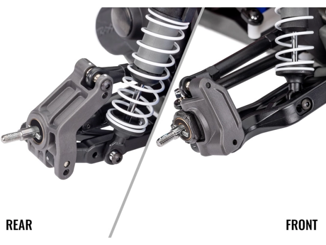 Továrně instalovaná sada zavěšení a prvků pohonu pro vysokou odolnost - Extreme Heavy Duty, je vyrobena z těch nejodolnějších materiálů, které společnost Traxxas používá.
