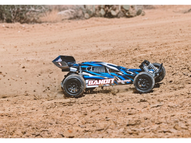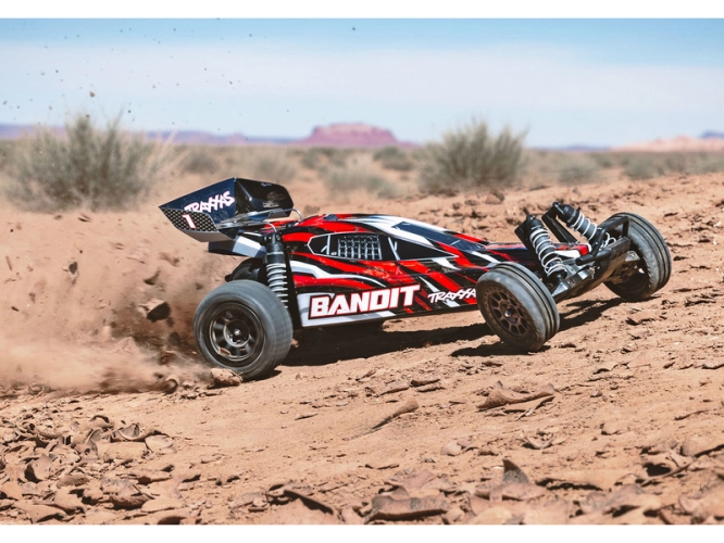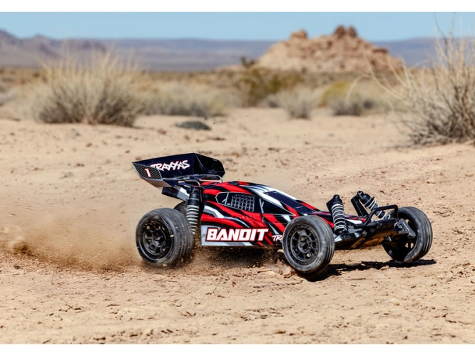 Cenově dostupný a přitom hbitý, rychlý a nenáročný RC model auta Traxxas Bandit 1:10 HD RTR, typu Buggy. Pohání jej stejnosměrný motor Titan 550. Model jezdí až 56 km/h! Obsahuje odolné komponenty - Extreme Heavy Duty a náhon 2WD. NiMH akumulátor a USB-C nabíječ v balení.