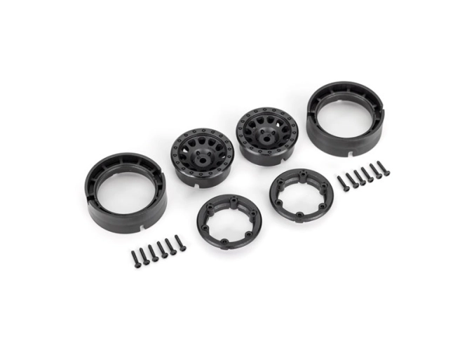 Traxxas disk 1.0" Method 105 beadlock černý (2). Vhodný pro RC modely aut Traxxas TRX-4M. Systém Beadlock pro montáž pneu bez lepení. Lze použít standardní pneu z TRX-4M nebo Mickey Thompson Baja, včetně zvýšených pneumatik pro High Trail. Unašeč 7 mm.