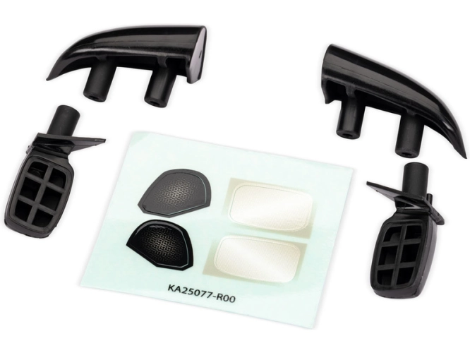 Náhradní díl pro RC model auta Traxxas Mini Rally 1:12 Ford RS200: doplňky karosérie černé. Boční zrcátka a střešní díly.