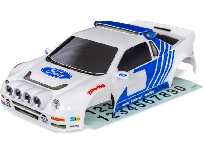 Traxxas karosérie Ford RS200 bílá. Hotová, nabarvená a sestavená karoserie s aplikovanými polepy. Včetně bezsponkového držáku.