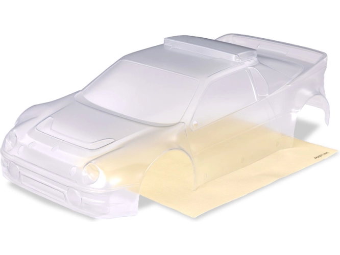 Traxxas karosérie Ford RS200 čirá. Ořezaná, vyžaduje barvení a dokončení. Včetně masky oken a aplikované přestřikovací fólie.