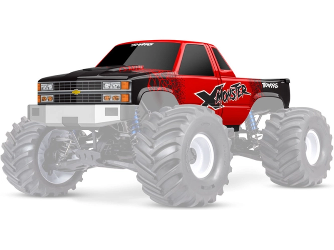Traxxas karosérie X-Monster Chevrolet GMT400 CK červená (pro X-Monster/X-Maxx MT). Hotová, nabarvená a sestavená karoserie. Včetně vnitřního rámu a bezsponkového držáku. Rám karoserie umožňuje montáž světelných LED tyčí.