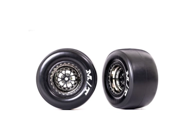 Traxxas kolo, disk Weld černě chromovaný (zadní) (2 ks) s pěnovou vložkou a nalepenými pneumatikami. Zadní dragsterová kola jsou skutečnou replikou. Speciálně vyvinutá směs pneumatik pro maximální přilnavost.