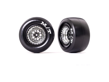 Traxxas kolo, disk Weld chrom/černý (zadní) (2 ks) s pěnovou vložkou a nalepenými pneumatikami. Zadní dragsterová kola jsou skutečnou replikou. Speciálně vyvinutá směs pneumatik pro maximální přilnavost.