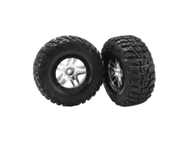 Kompletní přední kola pro 2WD auta Traxxas Slash. Saténové disky Split-Spoke s černými ráfky a nalepenými pneumatikami Kumho s vložkou (měkká směs). Rozměr disku 61/81x42 mm. Celkový rozměr 110x46 mm. Unašeč je šestihran 12mm s offsetem 22 mm.