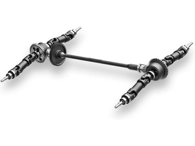 Hnací hřídele použité v RC modelu auta Mini Maxx jsou o 50% větší než standardní na modelech 1.16. Kardanové klouby i teleskopická těla jsou zesílena pro rychlé starty a ostré brzdění a to dokonce i při případnému upgradu na pohon VXL3-S