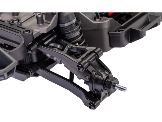 Dvojitá lichoběžníková ramena zavěšení udržují správnou geometrii v celém rozsahu pohybu. Jsou navrženy podle standardů modelů Maxx s větším množstvím materiálu v exponovaných místech.