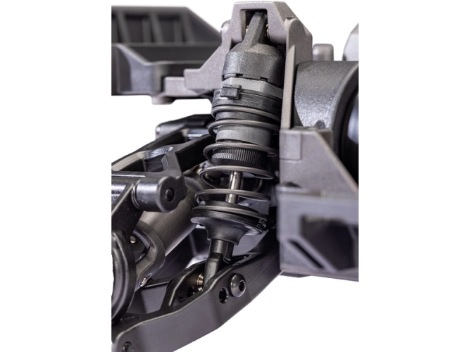 Olejové tlumiče 1:10 s vysokým zdvihem využívají duální X-kroužky pro dokonalé utěsnění a perfektní chod. Robustní design v kombinaci s vysokým objemem oleje dokáže absorbovat i tvrdé nárazy v těžkém terénu. Tlumiče si můžete naladit podle svých představ úpravou pružin a změnou viskozity oleje do tlumičů.