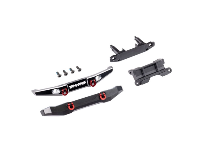 Tuningové nárazníky pro RC model auta TRX-4M Ford Bronco s červeně eloxovanými D-očky jsou vyfrézovány z masivního hliníku a dodají vašemu modelu styl a odolnost. Nárazníky mají odolný černý eloxovaný povrch s opracovanými hranami pro high-tech vzhled. Obsahují otvory pro standardní nárazníková světla Bronco a montážními výstupky na zadním nárazníku pro tažné zařízení. Konstrukce s vysokými nájezdovými úhly udržuje nárazníky daleko od překážek, o které by se mohly zadrhávat.