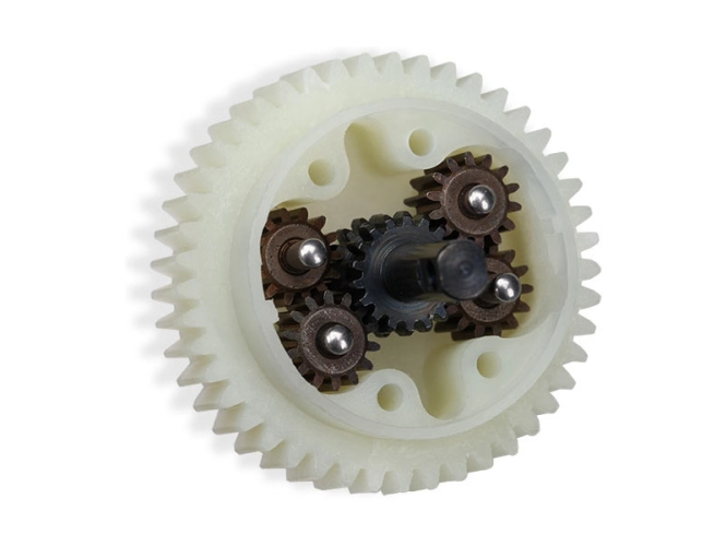 Diferenciál s planetovou převodovkou Traxxas má nylonové pouzdro pro dlouhou životnost. Používá vnitřní ozubená kola z tvrzené oceli pro maximální pevnost při náročných terénních jízdách. Tento typ diferenciálu nevyžaduje prakticky žádnou údržbu a jeho efektivní konstrukce klade na kola maximální točivý.