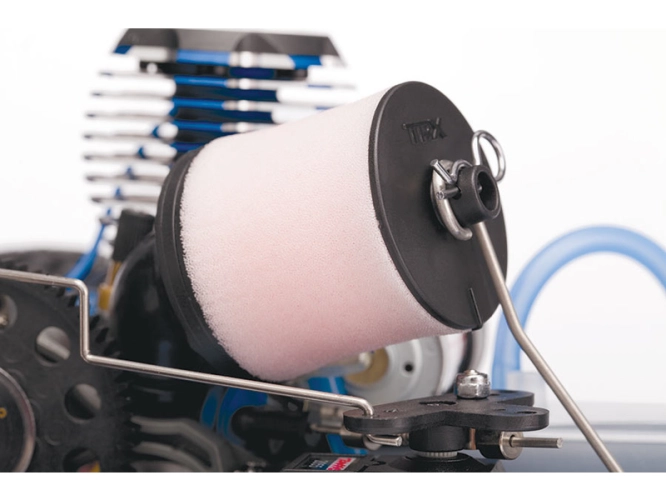 Vysoce výkonný motor TRX 3.3 Nitro Slash nasává vzduch přes velký vzduchový filtr. Dvoustupňová konstrukce zachycuje velké částice ve vnější části a díky jemné vnitřní části, proudí do motoru vzduch bez nečistot. Větší průměr pěnových prvků umožňuje volnější proudění vzduchu a větší výkon motoru.
