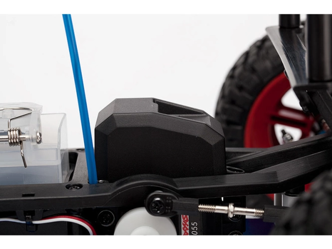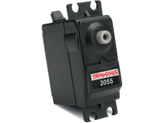 Model je osazen dvěma digitálními servy. Jedno pro plyn/ brzdu a druhé pro řízení. Serva 2055 mají plastové převody, moment 6.2 kg.cm a rychlost 0.20 s/60° při 6.0 V.