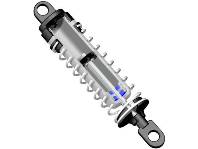 Olejové tlumiče využívají technologii X-kroužků pro dokonalé utěsnění a super hladký chod. Jsou plně nastavitelné se širokou škálou olejů, pružin a pístů. Předpětí pružin lze nastavit pomocí podložek.