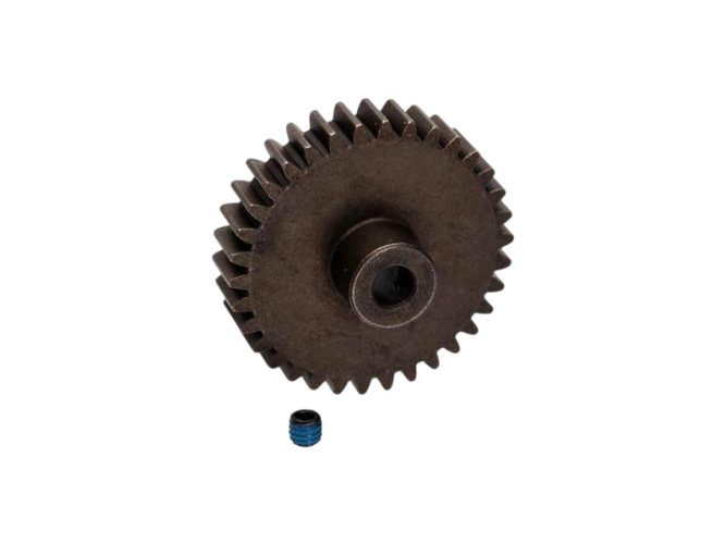 Traxxas pastorek na hřídel 5 mm s 34 zuby a modulem ozubení 1 mm pro RC modely aut. Vyrobeno z sintrované oceli. Součástí balení je červík.