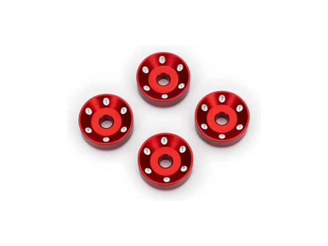 Traxxas podložka disku kol hliníková červená (4), tuningový díl pro RC model auta Traxxas Maxx Slash, určeno také pro systém kol Pro Scale s modulárními komponenty disku a pneumatikami nalepenými na pomocných nylonových kroužcích.