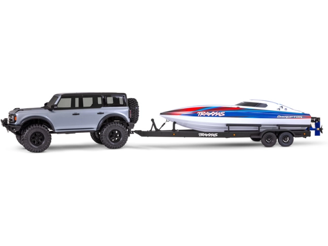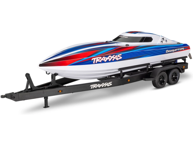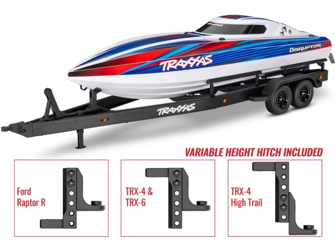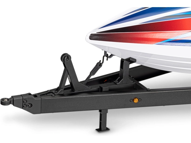 Přepravujte svůj člun Traxxas Disruptor k vodě stylově s detailním dvounápravovým přívěsem. Elastické úchyty bezpečně připoutají loď k lehkému hliníkovému rámu po celé délce přívěsu. Pomocí obsaženého výškově nastavitelného tažného zařízení můžete přívěs táhnout za RC modely aut Traxxas TRX-4 / TRX-6* (vč. High Trail) a Ford Raptor R. Můžete tak s lodí na přívěsu zacouvat přímo do vody.