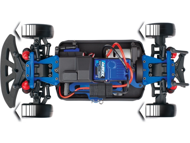 Model je řízen dvoukanálovou proporcionální volantovou RC soupravou LaTrax TQ v pásmu 2.4 GHz - provoz bez rušení. Vysílač je napájen pouze 4 AA články, volitelně můžete použít i nabíjecí NiMH akumulátory.