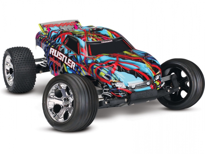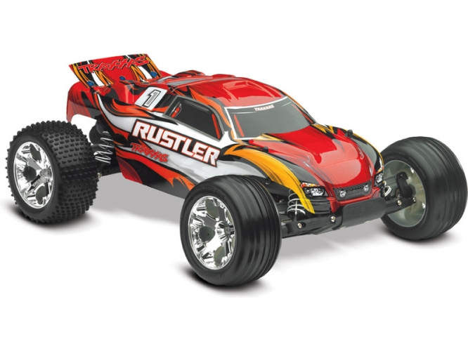 RC model auta Traxxas Rustler Stadium Truck je plně sestaven a připraven k jízdě. Pohání jej výkonný stejnosměrný motor Titan 550 12T, regulátor XL-5 s podporou LiPol akumulátorů, 4A nabíječ na 12 V do autozásuvky, ID konektory. RC souprava Traxxas TQ 2.4 GHz. Auto jezdí až 55 km/h!