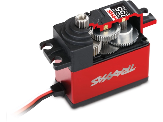Digitální servo standartní velikosti pro RC modely aut 1:10, Traxxas 2255, voděodolné, hliníkové tělo, má moment 29 kg.cm @ 6V a rychlost 0.15 s/60° @ 6V. Kovové převody, rozměry: 41x20x43mm, hmotnost 68g. Tisícihran 25T