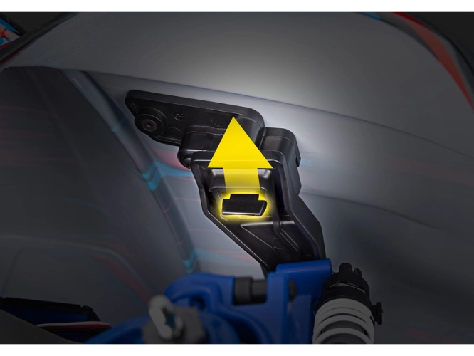 Unikátní systém uchycení karoserie pomocí zobáčků v podbězích kol, umožňuje rychlou a snadnou výměnu baterie a čistý vzhled modelu neruší klipy.