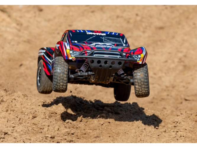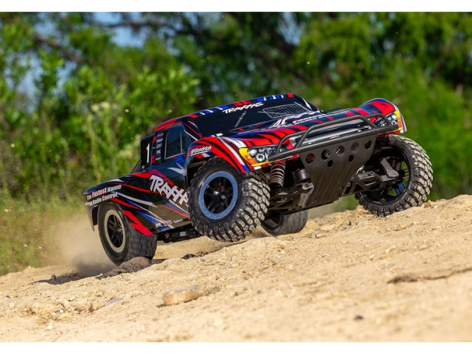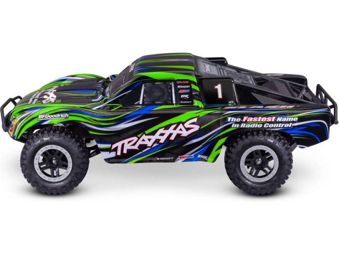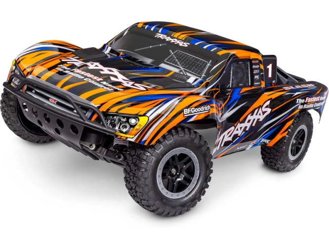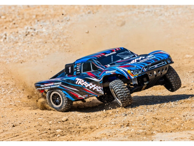 Traxxas Slash je výkonný RC model auta v měřítku 1:10 s náhonem 2WD a rychlostí až 56 km/h. Je plně sestaven a připraven k jízdě. Pohání jej výkonný střídavý motor s regulátorem BL-2S. Jednoduchá RC souprava Traxxas TQ 2.4 GHz poskytuje precizní mechaniku pro přesné řízení. Navíc je model továrně vybaven komponenty sady Extreme Heavy Duty pro vysokou odolnost a exkluzivním bez-sponkovým systémem upínání karoserie.