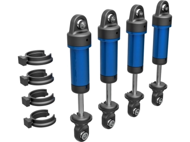 Tuningový díl pro RC modely aut Traxxas TRX-4M: Traxxas tlumič GTM hliníkový modře eloxovaný (4). Sestavený, bez pružin.
