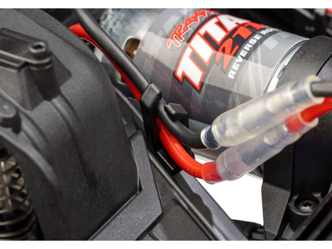 Tří-kanálový přijímač Traxxas TQ 2.4 GHz, zajišťuje bezpečné řízení bez výpadků. Snadné spárování jedním tlačítkem. Indikace stavu pomocí LED diody.