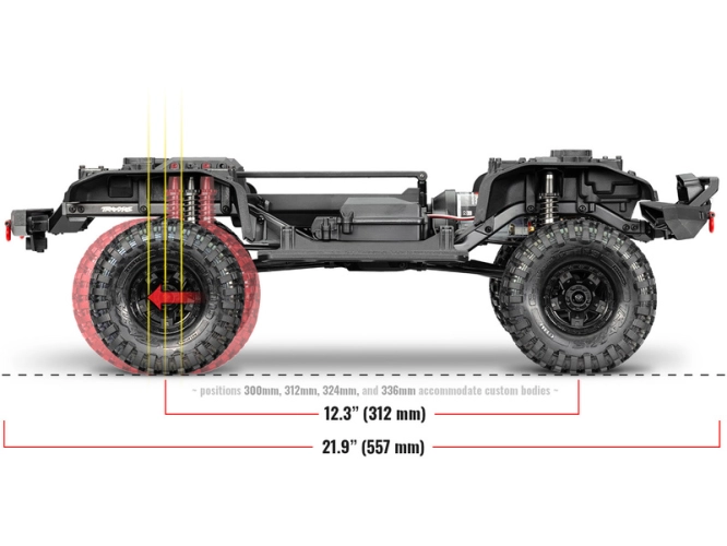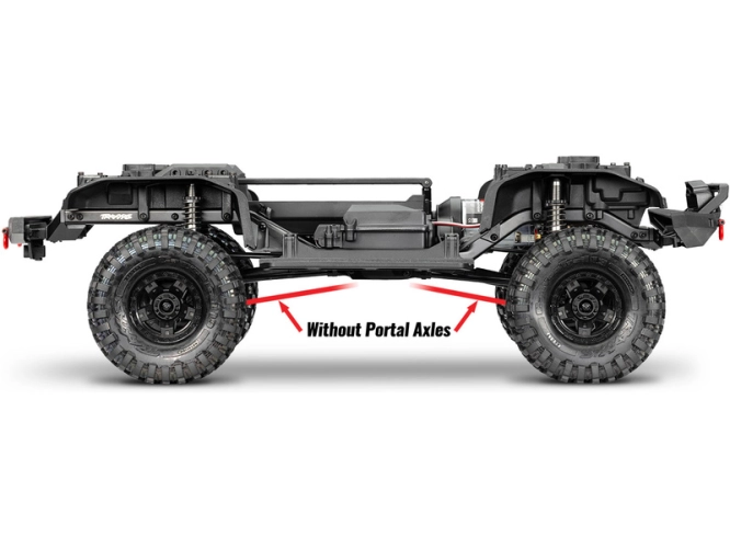 Šasi TRX-4 používá portálové nápravy s nápravovou převodovkou. Nápravová převodovka zvyšuje světlou výšku, snižuje namáhání převodovky, kardanových hřídelí a dále se snižuje torzní síla - model se méně naklápí.