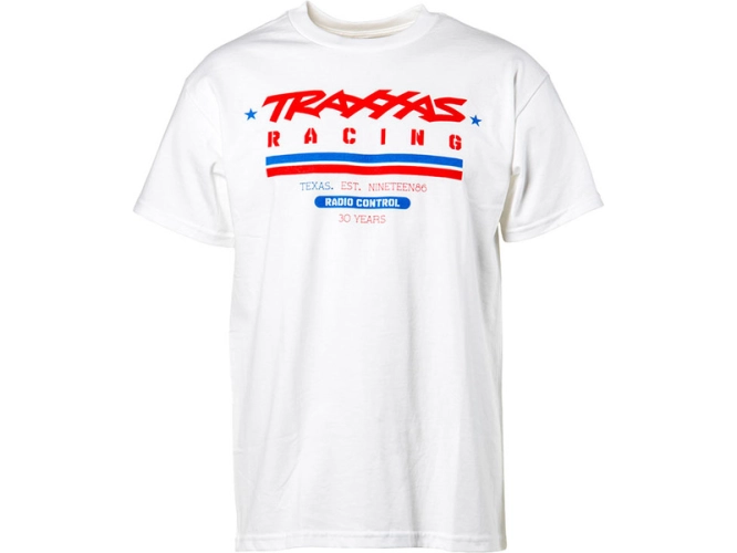 Tričko s krátkým rukávem pro dospělé Traxxas s logem TRAXXAS a grafikou Heritage v bílé barvě. Velikost XXXL. Stylové tričko ve standardním střihu pro každého fanouška RC modelů Traxxas. Materiál 100% bavlna.