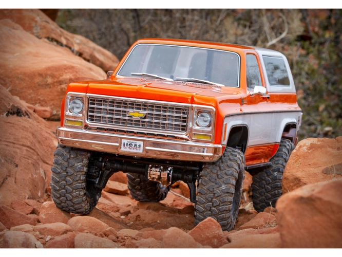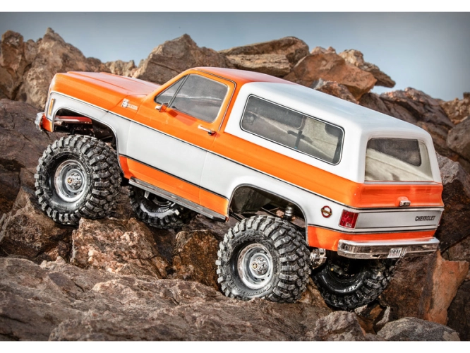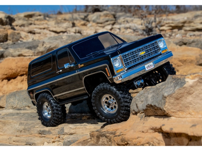 Expediční RC model auta TRX-4 Chevrolet K5 Blazer 1979 s výbornými schopnostmi v terénu a nově s detailní bezsponkovou karoserií s klasickým vzhledem ze 70-80 let. Osvědčené šasi TRX-4, dálkově řízená 2rychlostní převodovka, uzávěrky diferenciálů a portálové nápravy.