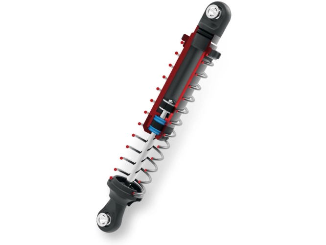 Čtyři olejem plněné tlumiče GTS poskytují hladké tlumení a perfektní jízdní vlastnosti. Hliníková těla tlumičů jsou opatřena maticí, pro nastavení předpětí pružin. Maximální těsnost tlumiče kolem pístnice zajišťují speciální těsnící X-kroužky.