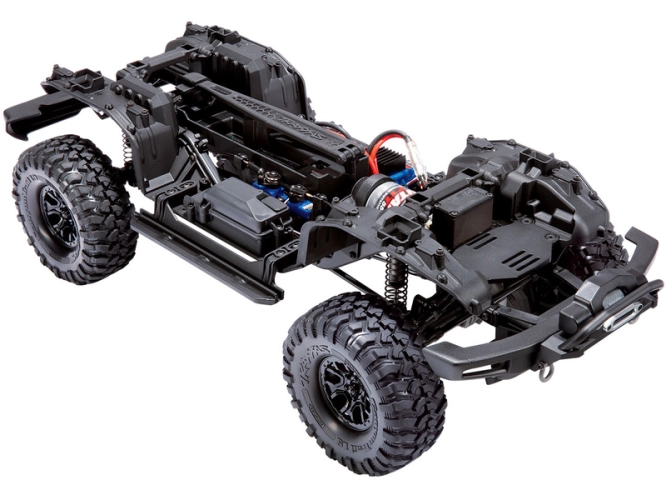 Šasi TRX-4 je postaveno z dvou ocelových profilů, které zabezpečují dostatečnou tuhost podvozku. Díky osvědčenému umístění motoru v přední části je zabezpečen dostatečné zatížení předních kol. Akumulátor je umístěn v ose šasi, takže je model přesně vyvážen a při jízdě se nenaklání. Šasi je promyšleno do nejmenších detailů, včetně vedení kabelů a montážních otovorů pro volitelné příslušenství.