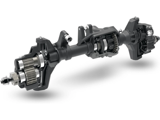 Portálové nápravy a velká kola pomáhají zvýšit světlou výšku pro výbornou průchodnost terénem. Středová světlá výška je ještě umocněna vysoko položenou převodovkou a z ní šikmo vedoucími hnacími hřídelemi.