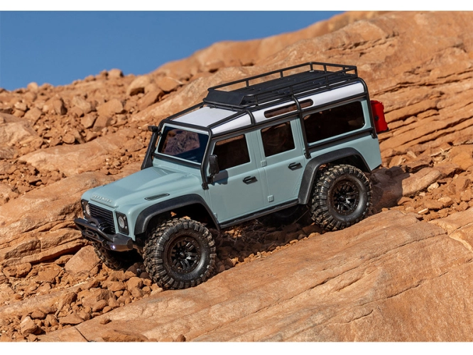 Balení obsahuje RC model auta Traxxas TRX-4M Land Rover Defender s nainstalovanými komponenty: stejnosměrný motorTitan 180 87T, řídící jednotka ECM-2.5, servo řízení 2065T. Vysílač Traxxas TQ, akumulátor LiPo 7.4V 750 mAh, USB nabíječ. Návod CZ a manuál EN, DE, FR, SP.