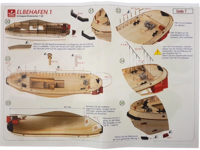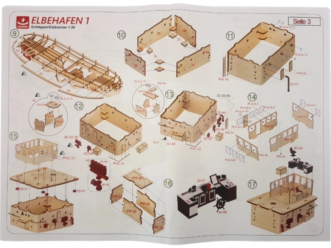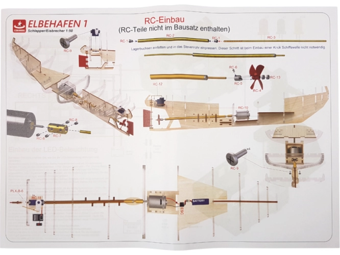 Set obsahuje obrázkový manuál, který obsahuje postup stavby trupu, nástaveb a vybavení, včetně zástavby pohonu a elektroniky. Na výkresech jsou nakresleny montážní sestavy, jejich kompletace a to včetně maketových detailů.