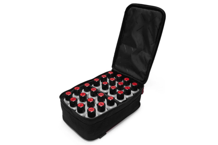 Taška UR0700-24M je dokonalým doplňkem pro přepravu a uspořádání vašich silikonových olejů v novém designu. Tato exkluzivní taška je speciálně navržena pro uložení 24 lahviček oleje Ultimate Racing o objemu 75 ml, které jsou součástí tohoto balení, a poskytuje profesionální organizaci v efektivnějším formátu.