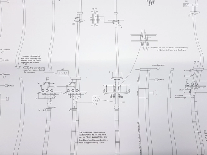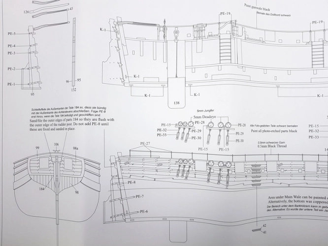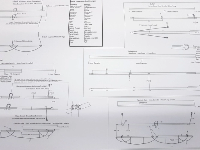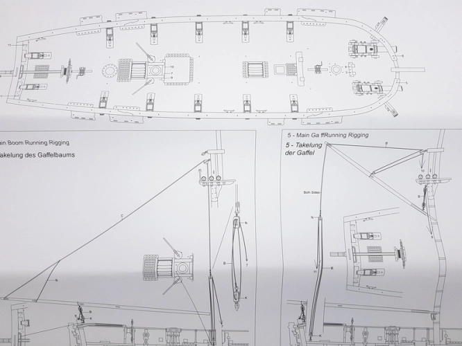 Set obsahuje kompletní sadu výkresové dokumentace modelu v měřítku 1:1 s obrázky jednotlivých detailů. Na výkrese jsou v měřítku nakresleny montážní sestavy, jejich kompletace a to včetně stěžňů a ráhen a způsob vázání lanoví. Postup stavby rámcově upravuje logické sestavení jednotlivých komponentů.