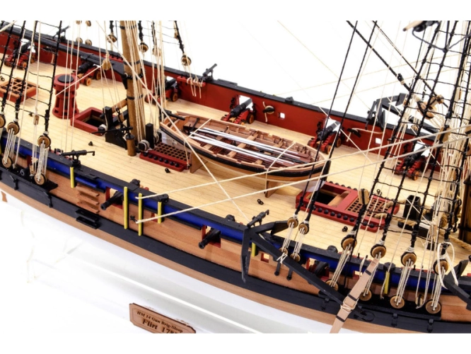 Model HMS Flirt je vhodný pro zkušené modeláře. Laserem řezané díly z MDF, čirého plastu a březové překližky. Všechny viditelné části jsou laserem vyřezány z desek z hruškového dřeva. Laserem řezaná a detailní hlavní paluba je z lipového dřeva. Odlitky hlavní děl, dvojitá obšívka trupu, z lipového a hruškového dřeva, ořechové jsou i stěžně a ráhna. 64-stránkový, barevný ilustrovaný stavební návod s 10 plány 1:1.