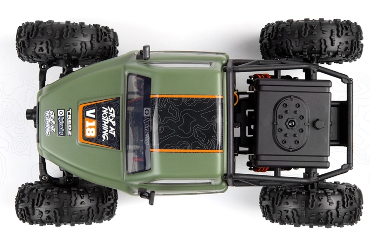 - Továrně sestavený elektricky poháněný terénní truck v měřítku 1:18 s trvalým pohonem všech kol
