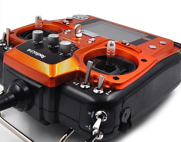 Ovládací prvky: Pro ovládání hlavních funkcí slouží přesné křížové ovladače s nastavitelnou silou neutralizačních pružin a možností přesunutí aretované osy pro plyn vlevo nebo vpravo. Díky tomu můžete libovolně volit provozní módy křížových ovladačů 1-4. Páky ovladačů mají nastavitelnou délku, můžete také dokoupit dlouhé hliníkové hlavice (se závitem M3). Digitální trimy mají zvukovou signalizací krokování a grafické zobrazení poloh na displeji. Jsou umístěny mírně excentricky a jsou snadno dosažitelné. Další proporcionální funkce mohou ovládat dva otočné ovladače na bocích vysílače s mechanicky aretovanou středovou polohou a tři knoflíky umístěné ve středu nad hlavním vypínačem. 8 přepínačů (z toho tři třípolohové a jeden momentový dvoupolohový) může sloužit jako kanálové přepínače, pro přepínání letových režimů nebo zapínání/vypínání mixů. Ovládací prvky jsou volně přiřaditelné.